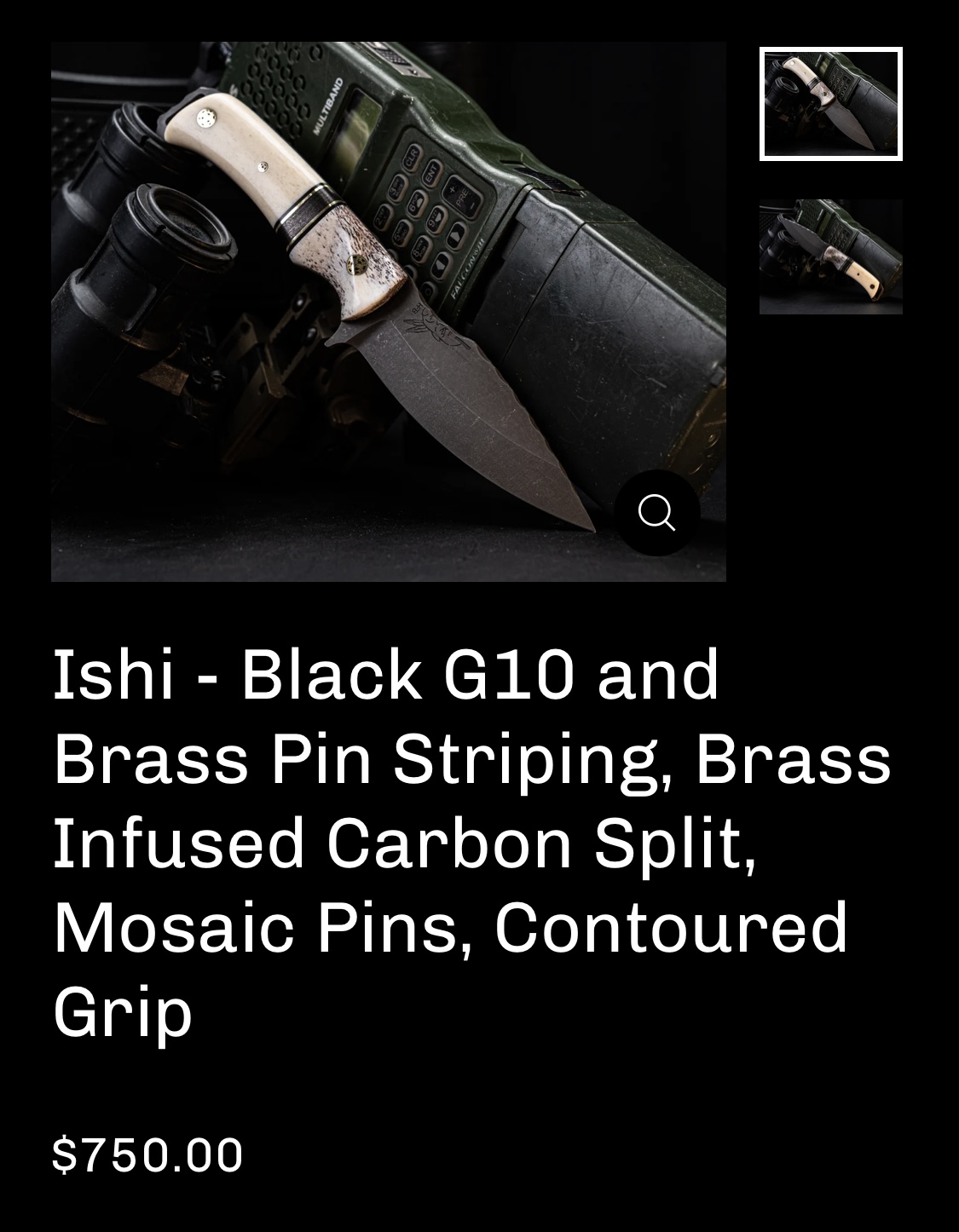 - Dirty elk/black G10 and brass pinstripes with brass infused carbon split/clean elk