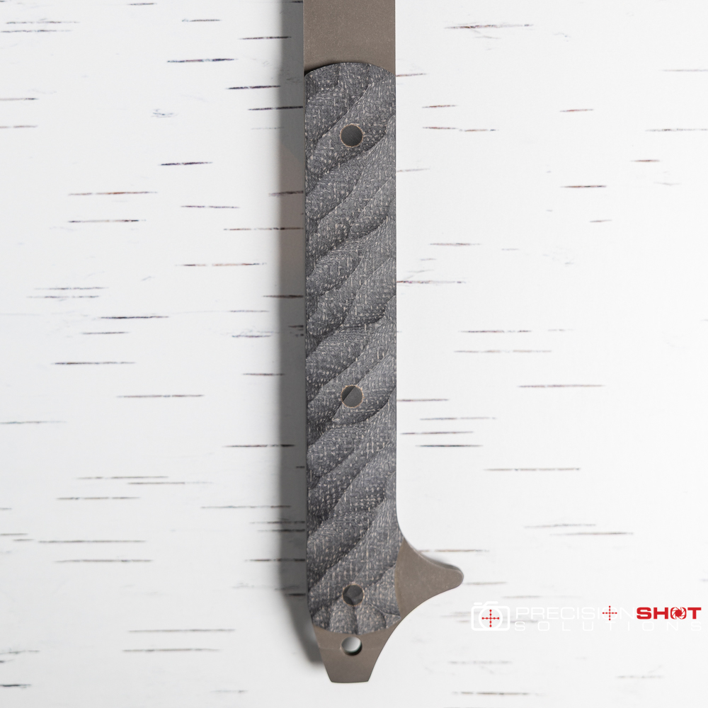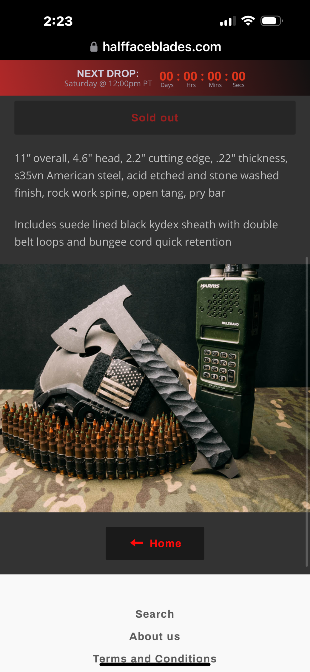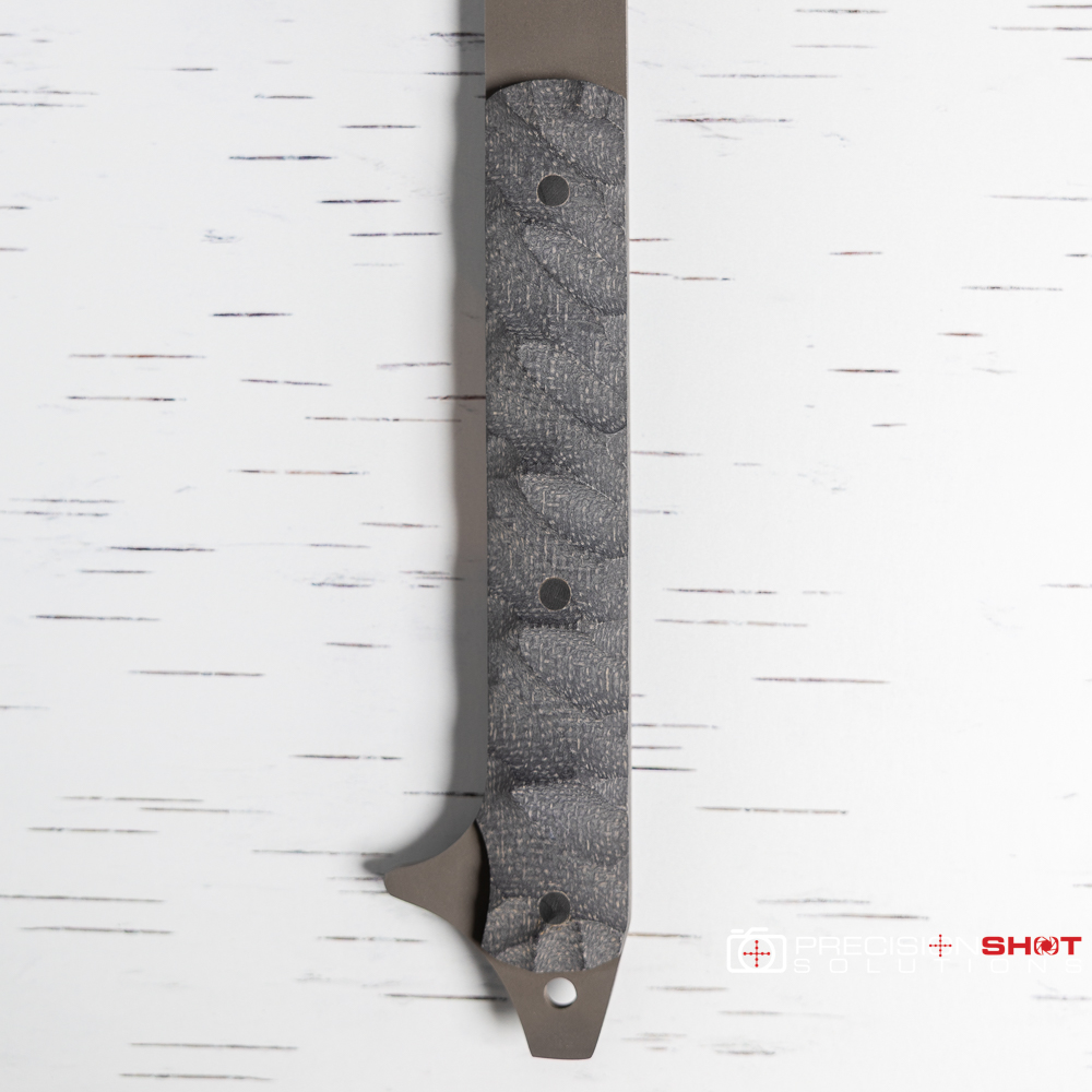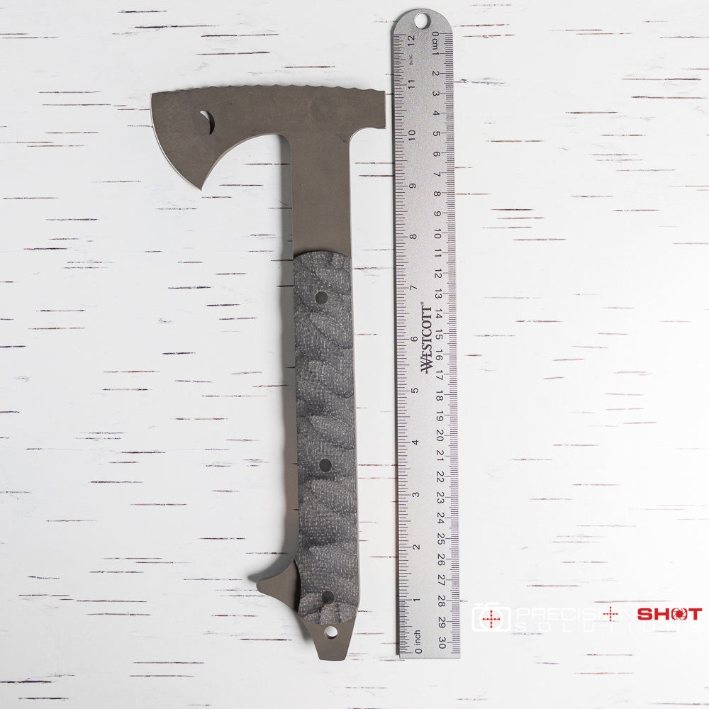 Half Face Blades Mini Howler Tomahawk featuring midnight black jute micarta handles with chaos grip, carbon fiber pins. Comes with suede lined black kydex sheath with double belt loops and bungee cord quick retention. I purchased this hawk on the 8/10/24 drop and it is in like-new and unused condition.